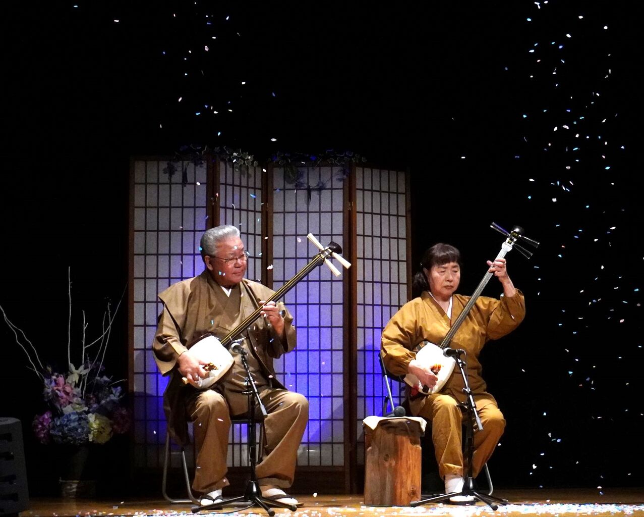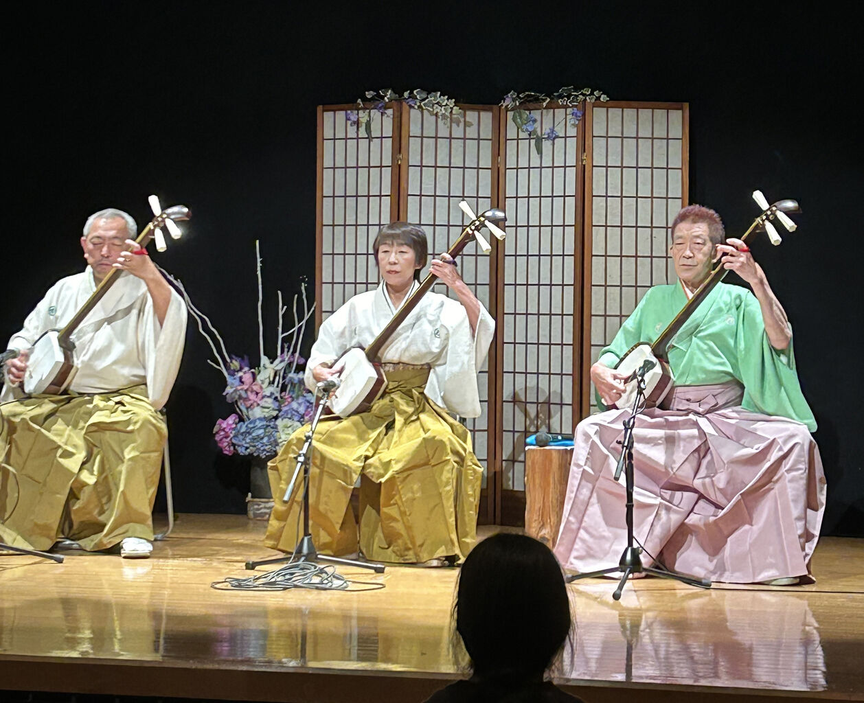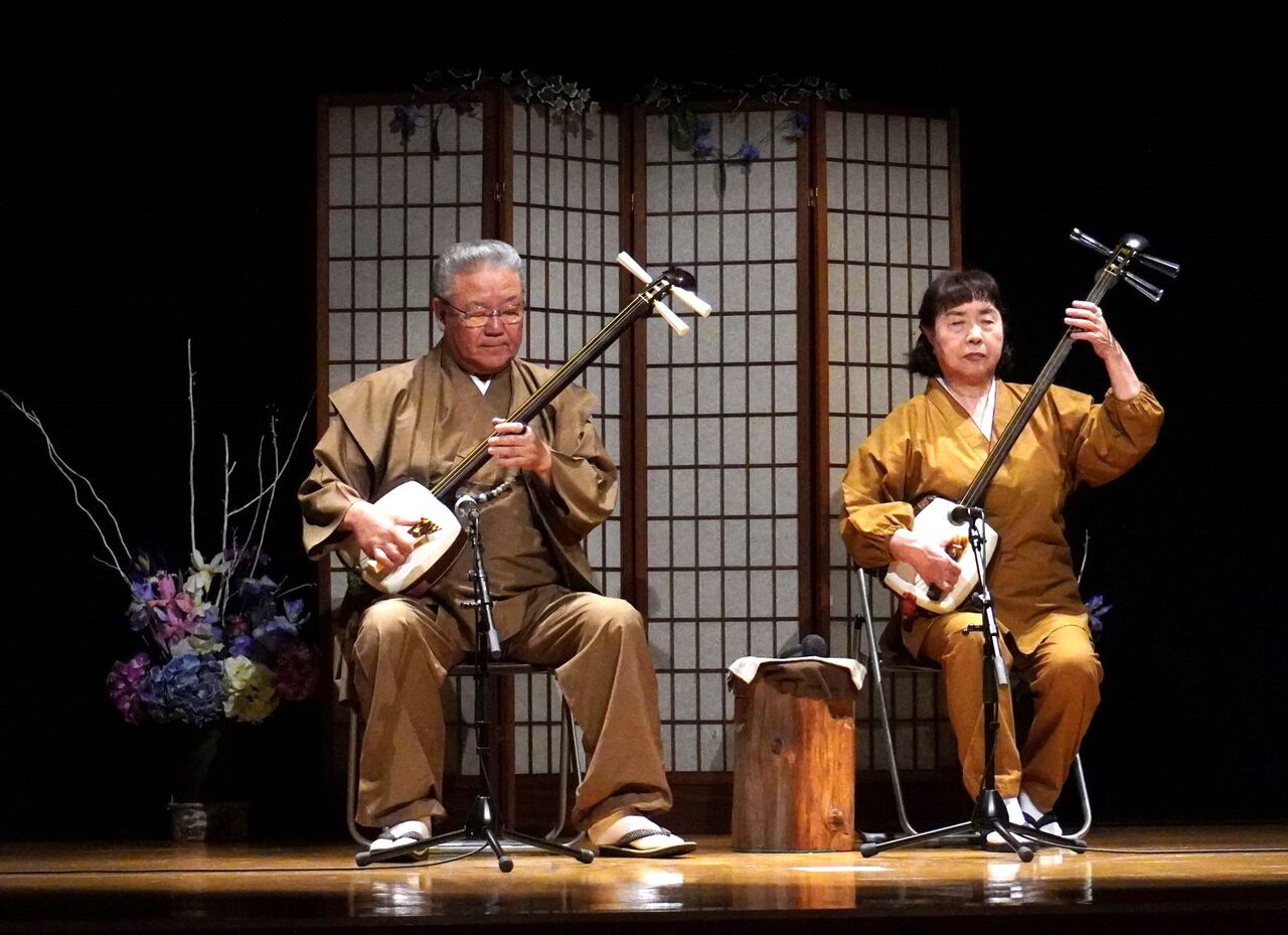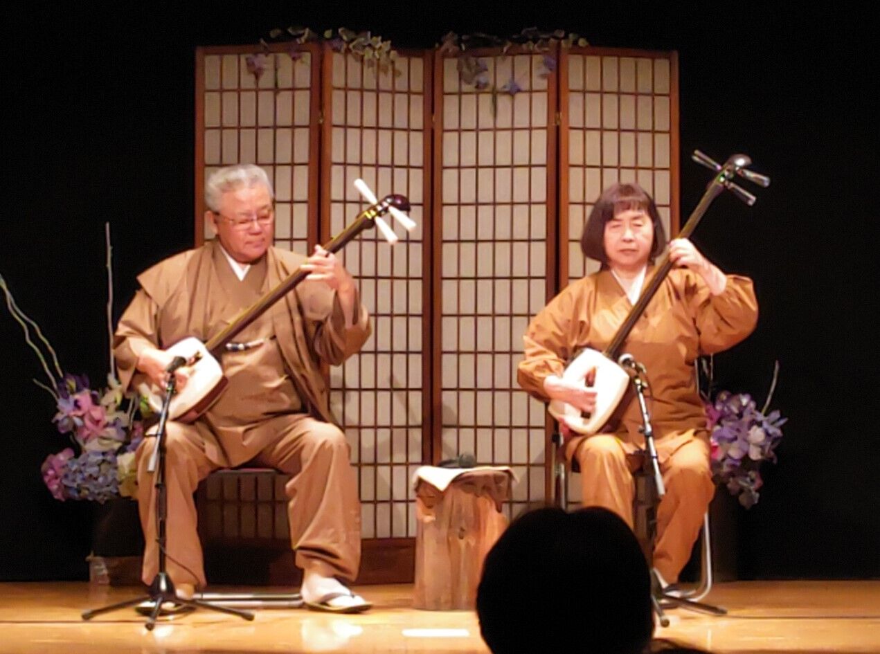 さてさて、本日も津軽三味線会館では生演奏が行われています。本日の演奏者は、津軽三味線 まんじ流家元 工藤まんじさん、まんじ幸人さん、まんじ祥子さんです♬