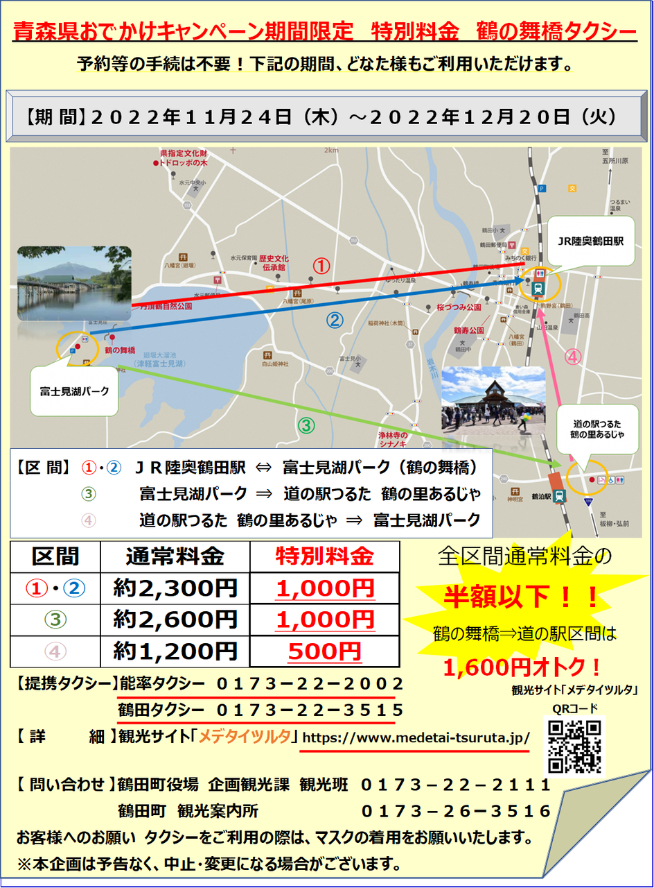 「青森県お出かけキャンペーン期間限定・特別料金鶴の舞橋タクシー」
